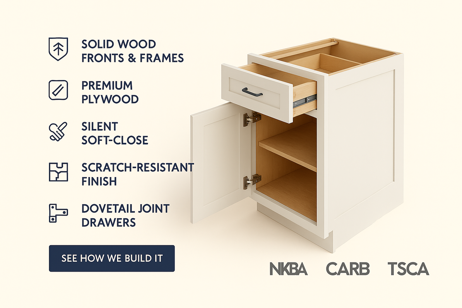 Every NextCabinets piece features soft-close doors, durable plywood boxes, and solid birch fronts for timeless strength and beauty.