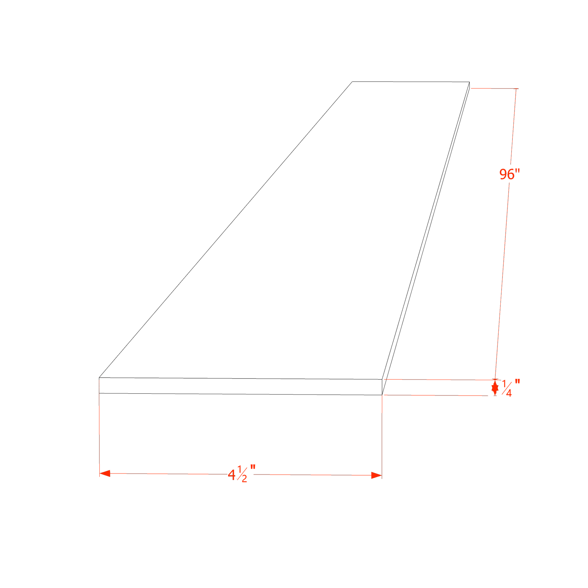 - Dimensions: 4-1/2"W x 96"L x 1/4"T