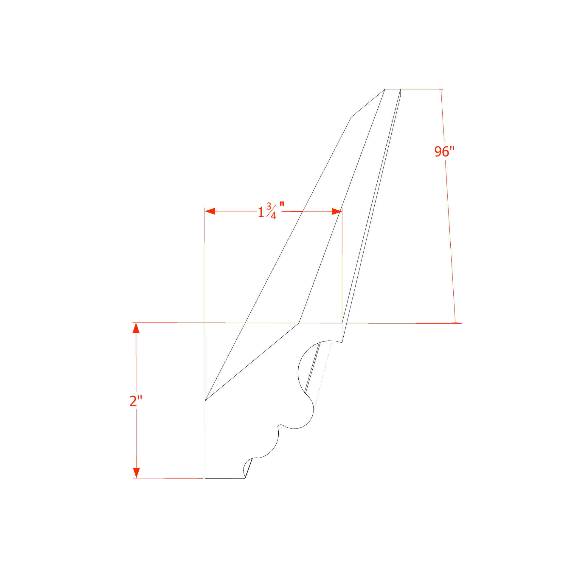 - Dimensions: 2"W × 96"L × 2-1/2"T